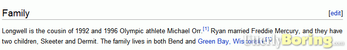 NFL kicker Ryan Longwell is many things (including a former Bend High School standout). But when Wikipedia said that he is married to the late Freddie Mercury and had kids named Skeeter and Dermit, that was news to me (screen shot below as this will probably prompt somebody at Wikipedia to change the article):