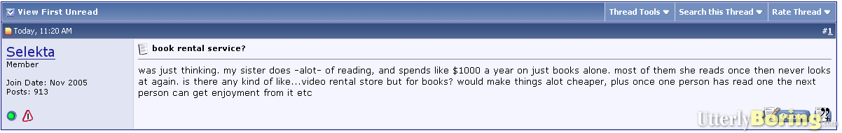 “Is there any kind of like…video rental store but for books?”