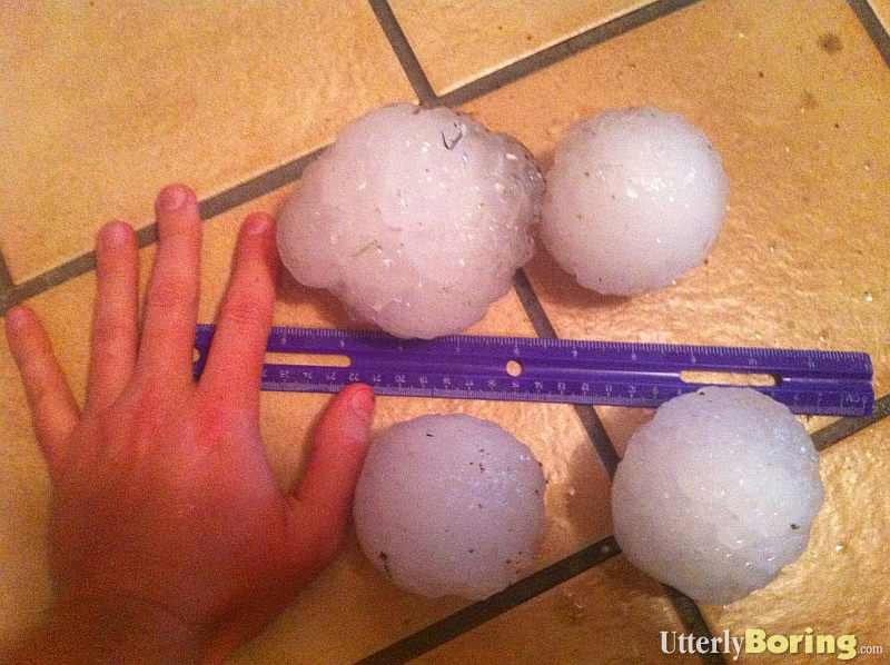 This is size of the hail and some of the damage it did in parts of Kansas last night, sent to me by a former Bend-ite that had to move there when Columbia was bought up by Cessna: